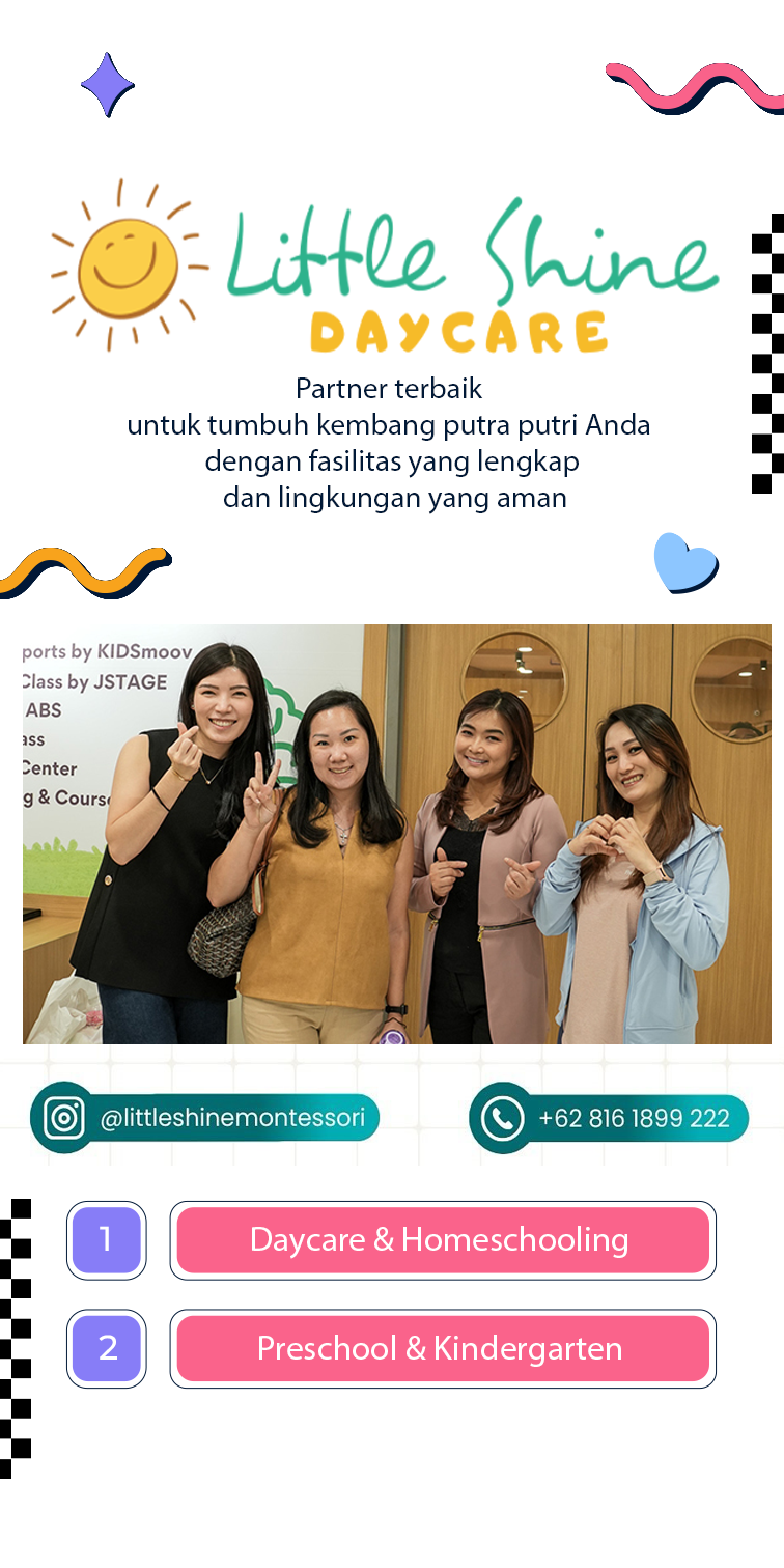 Layanan daycare, preschool, kindergarten dan homeschooling. Little Shine Montessori adalah partner terbaik untuk tumbuh kembang putra putri Anda dengan fasilitas yang lengkap dan lingkungan yang aman serta didukung oleh tim pendidik dan pengasuh yang sudah terlatih dan berpengalaman di bidangnya.